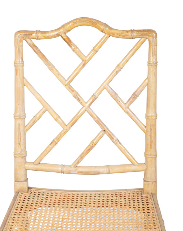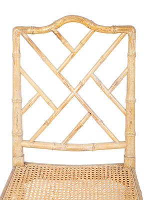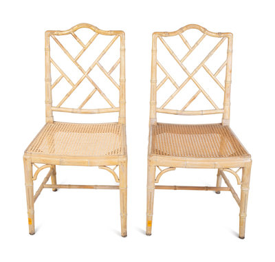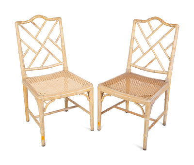 A Pair of Chippendale Style Bamboo and Rattan Cane-Seat Side Chairs