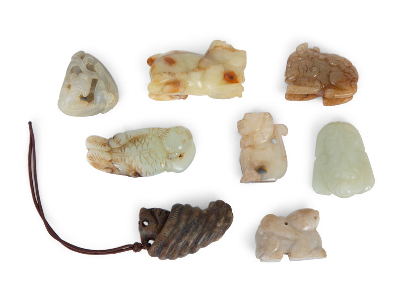 A Group of Eight Chinese Carved Hardstone Ornaments