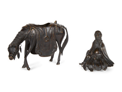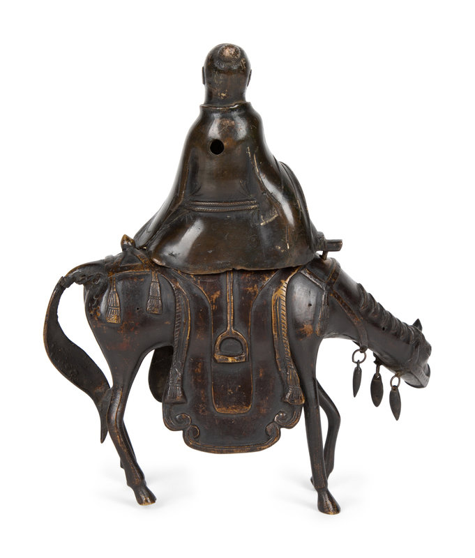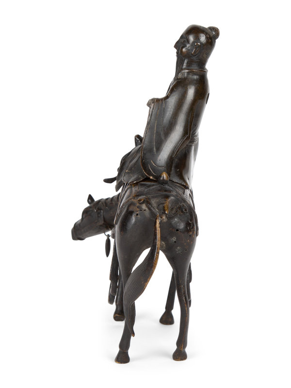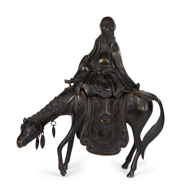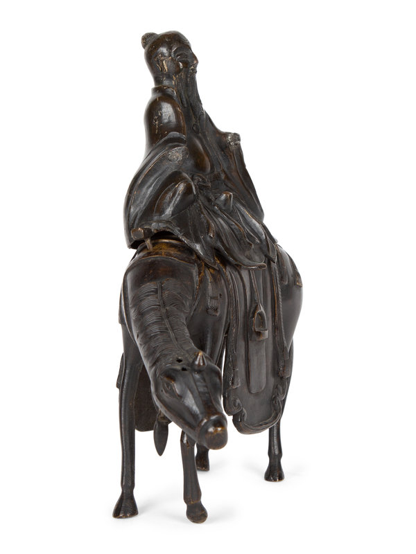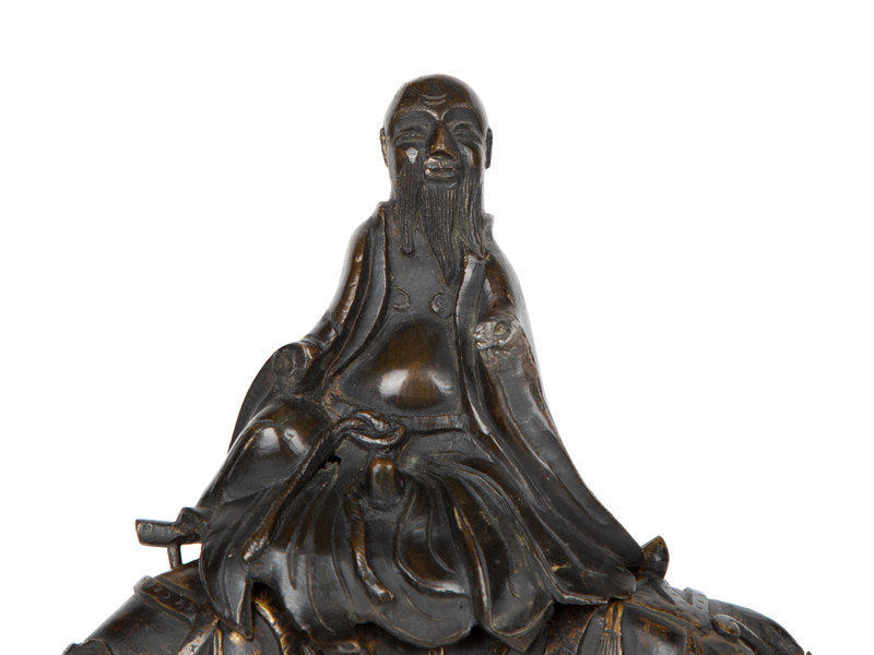 A Chinese Bronze Figure of Shoulao on Horseback