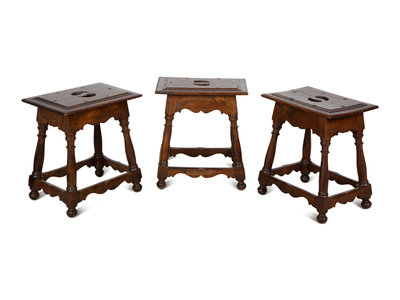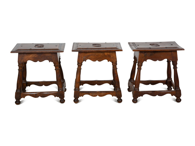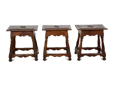 Three Italian Baroque Style Walnut Stools