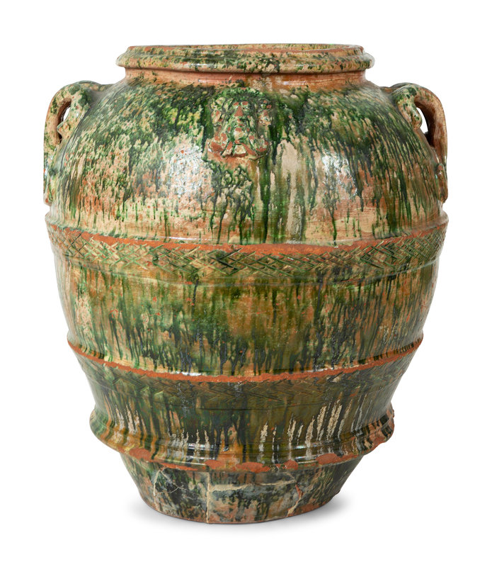 An Italian Green Glazed Terra Cotta Large Oil Jar