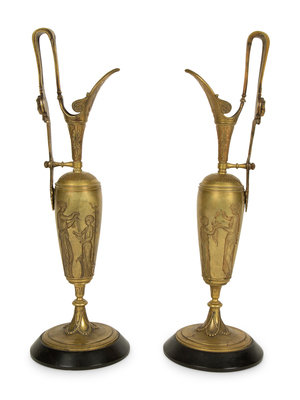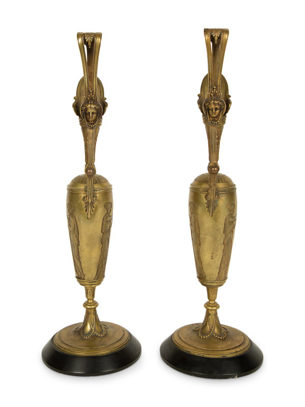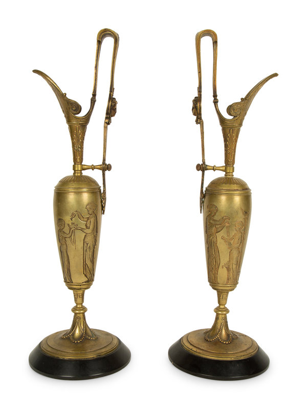 A Pair of Neoclassical Gilt Bronze Ewers
