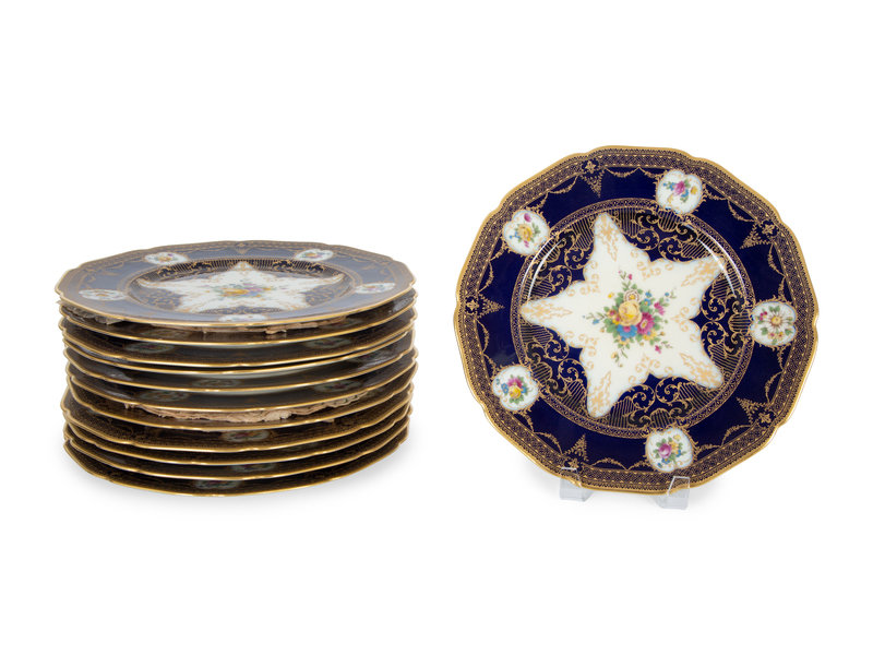 A Set of Twelve Parcel-Gilt and Painted Bavarian Cabinet Plates