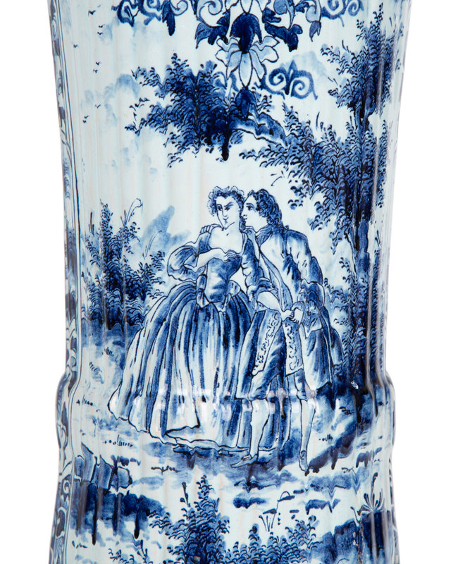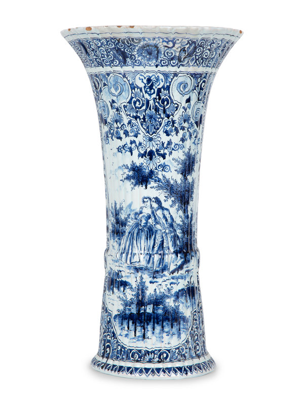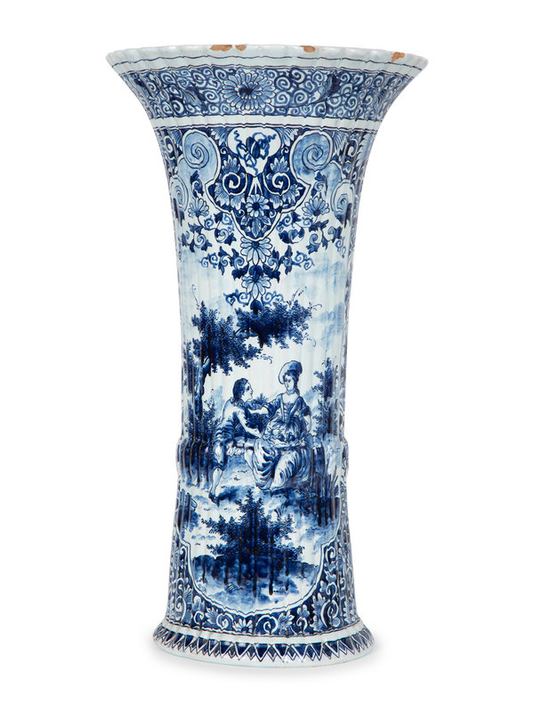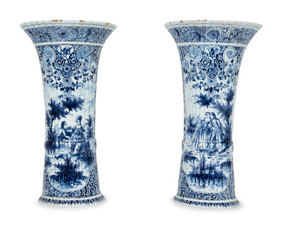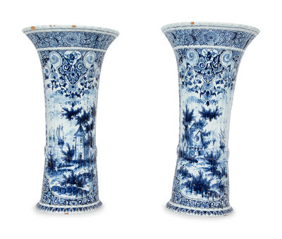 A Pair of Dutch Delft Trumpet-Form Fluted Vases