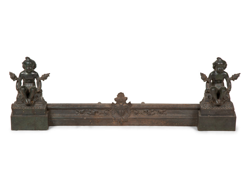 A Neoclassical Style Patinated Bronze Fire Fender