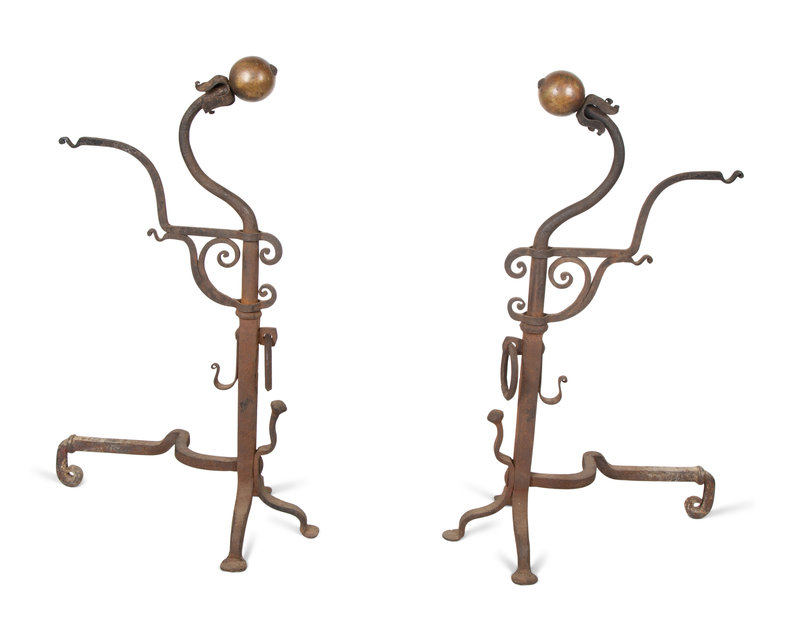 A Pair of Continental Iron Large Andirons