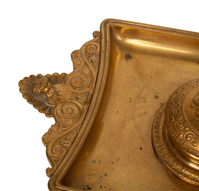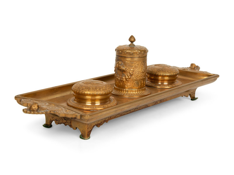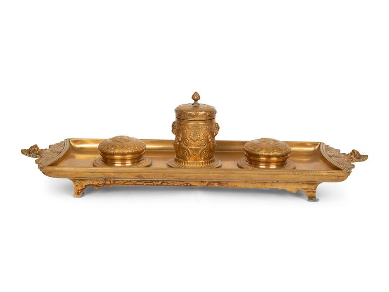 A Continental Gilt Bronze Inkwell