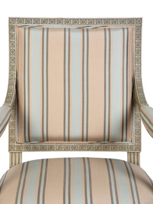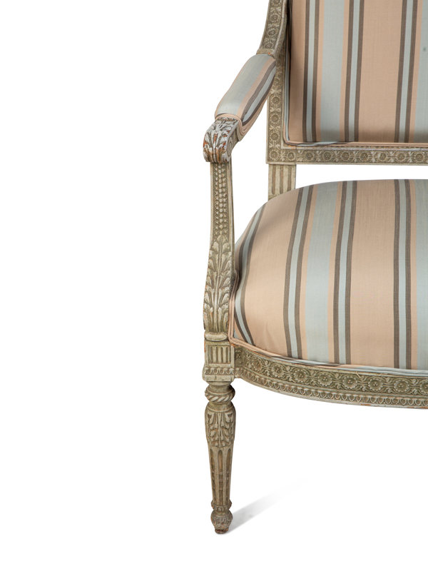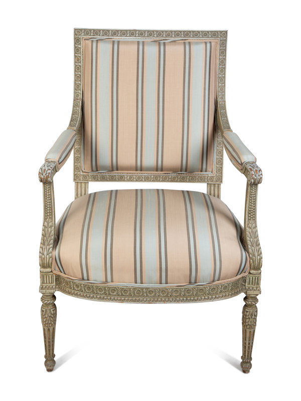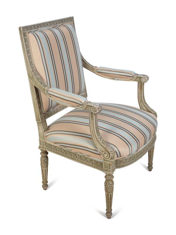 A Louis XVI Style Carved and Painted Fauteuil
