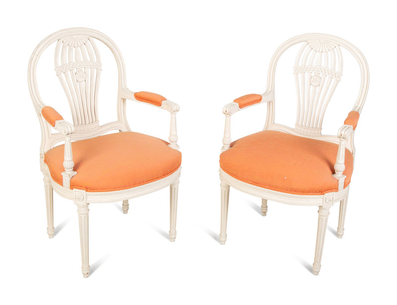 A Pair of Carved and Painted Wood Montgolfière Fauteuils