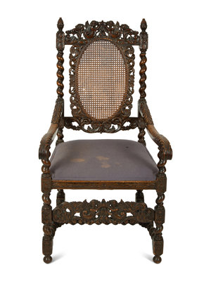 A William & Mary Style Carved Walnut Armchair