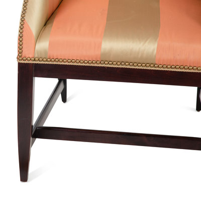 with coral and gold stripe upholstery.