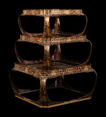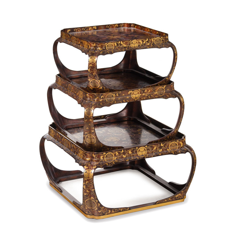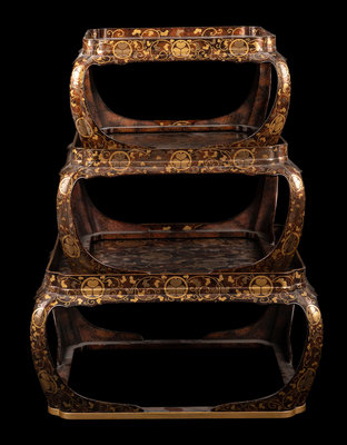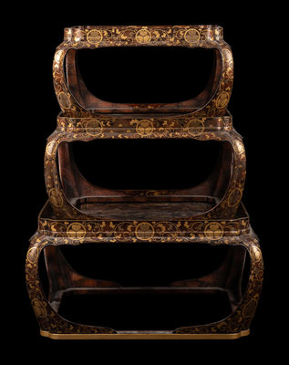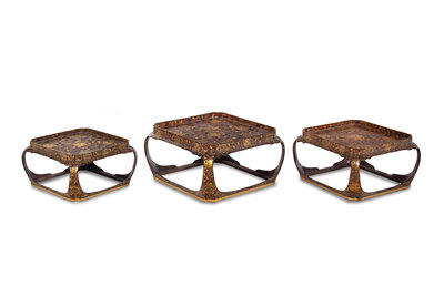 A Set of Three Japanese Gilt Decorated Lacquer Nesting Tables