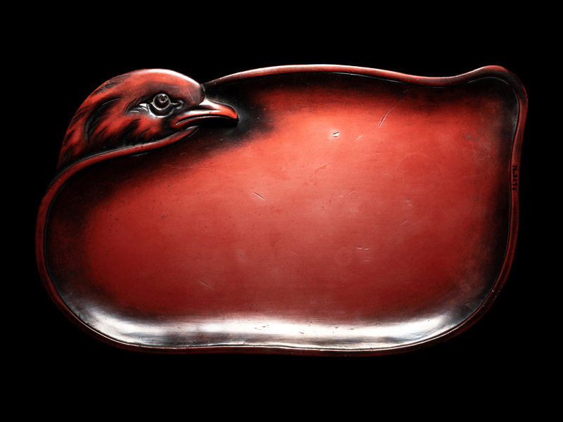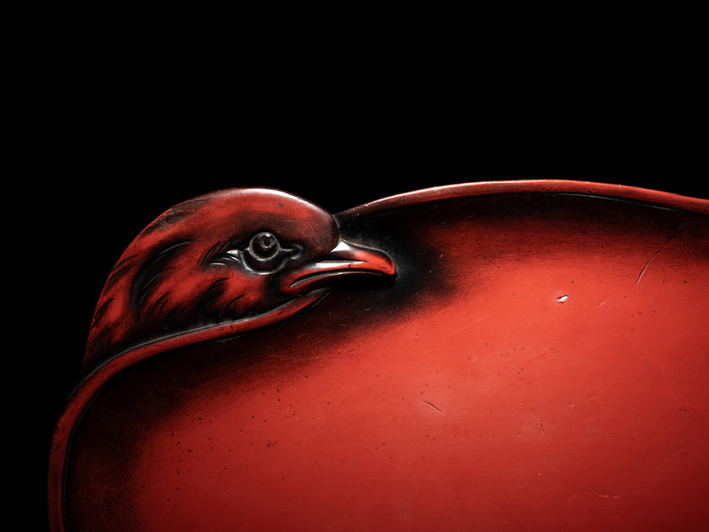 A Japanese Red Lacquer Bird-Form Dish