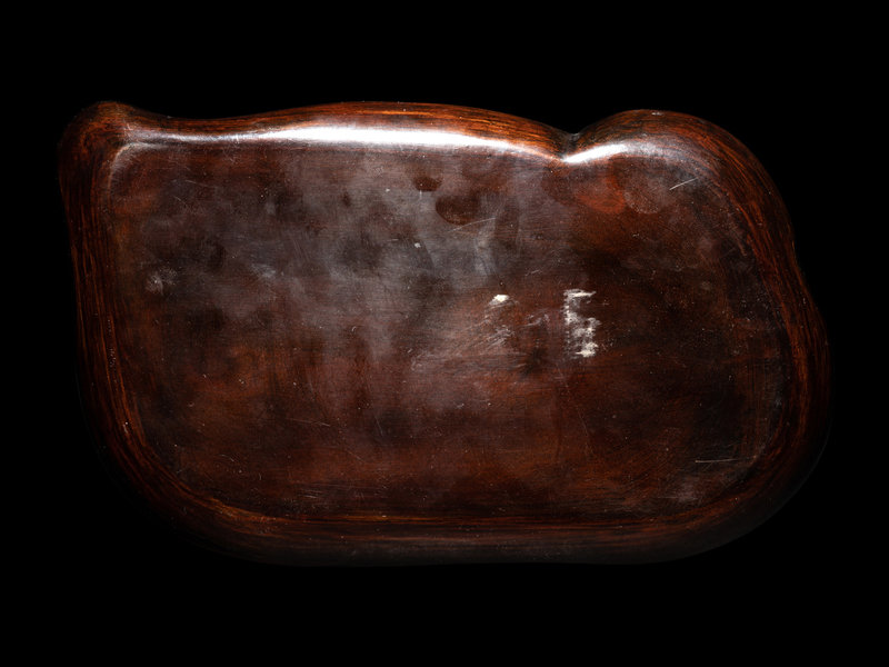 in the form of a recumbent bird with its head turned, carved with an detailed eye and beak.