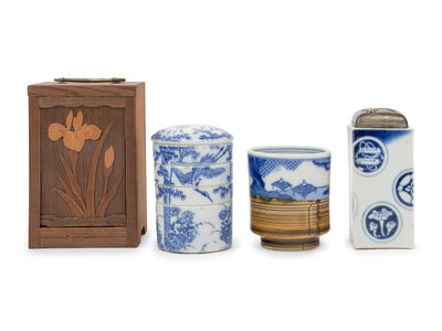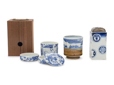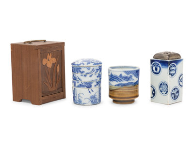 Three Japanese Blue and White Porcelain Articles