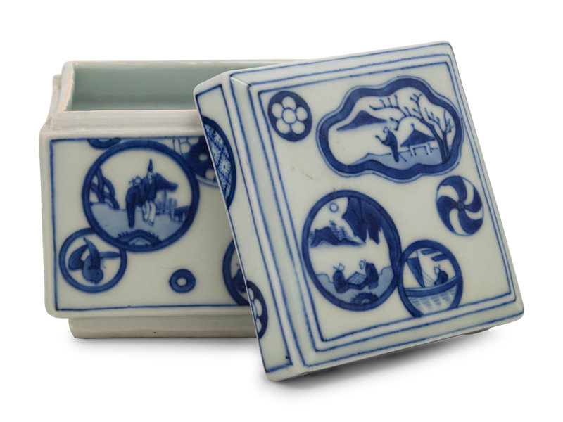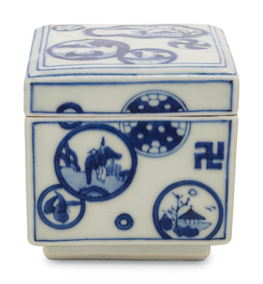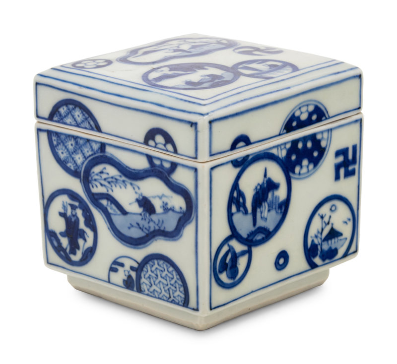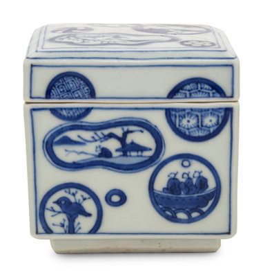 A Japanese Blue and White Porcelain Square Covered Box