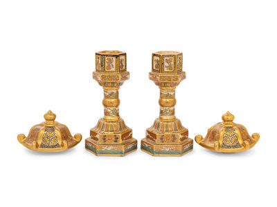 each decorated in gilt and polychrome with floral and foliate motifs.