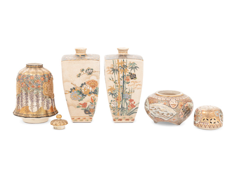 comprising an incense burner, koro, decorated with panels showing figures at various tasks;