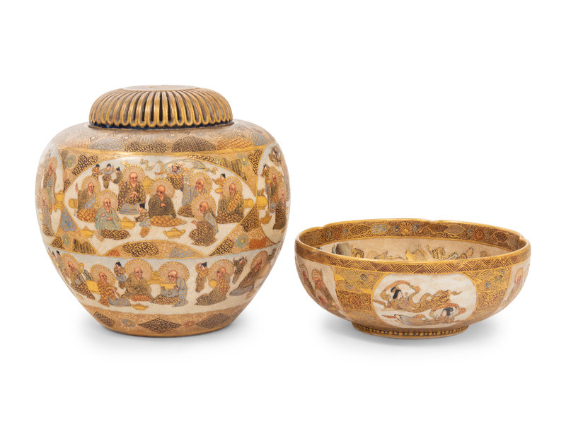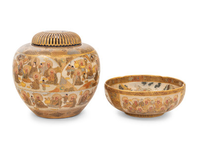 the first a covered jar, the second a bowl, painted with figural decoration.