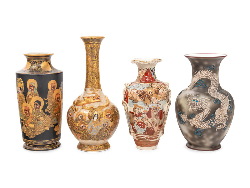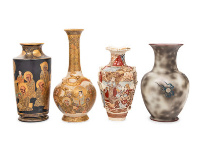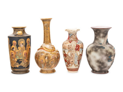 comprising three satsuma vases, and one grey ground polychrome enameled baluster vase.