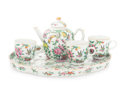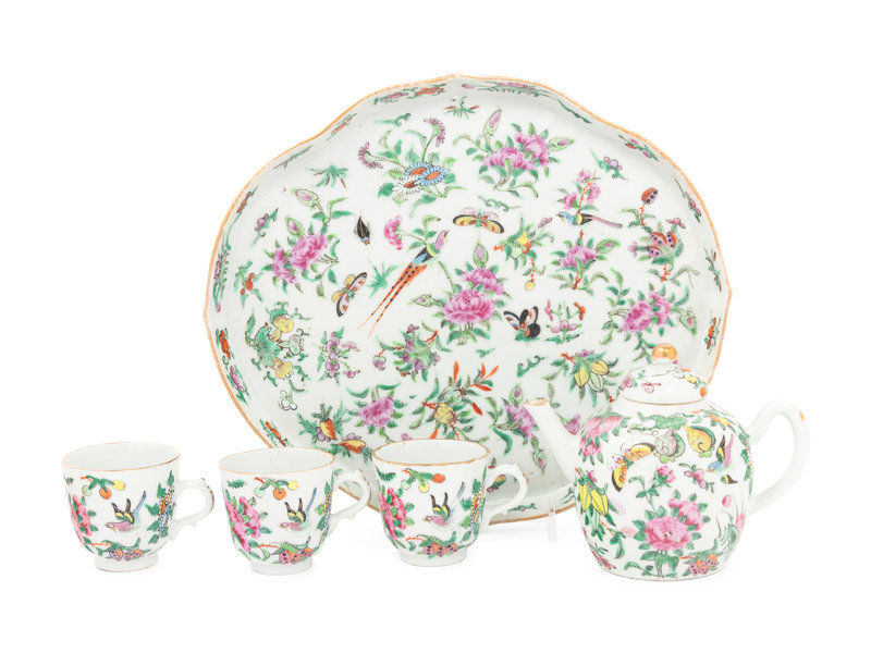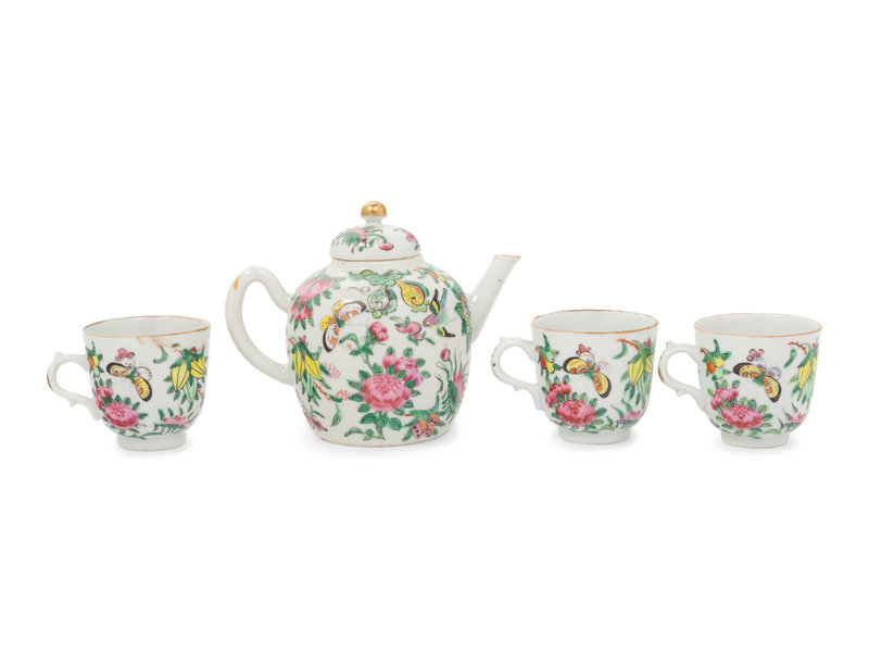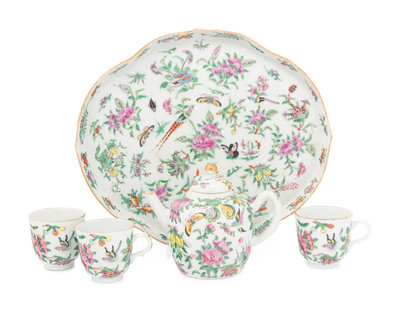 A Five-Piece Famille Rose Porcelain 'Butterfly' Tea Set