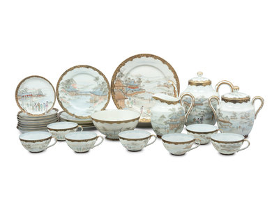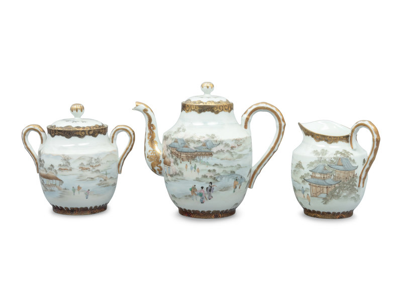 A Set of Japanese Gilt Decorated Enameled on Eggshell Porcelain Tea Wares