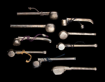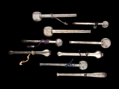 Nine Japanese Silver Portable Writing Sets, Yatate