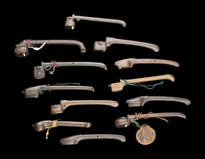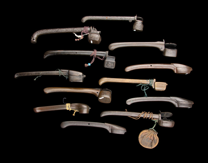 12 Japanese Silver Inlaid Bronze Portable Writing Sets, Yatate