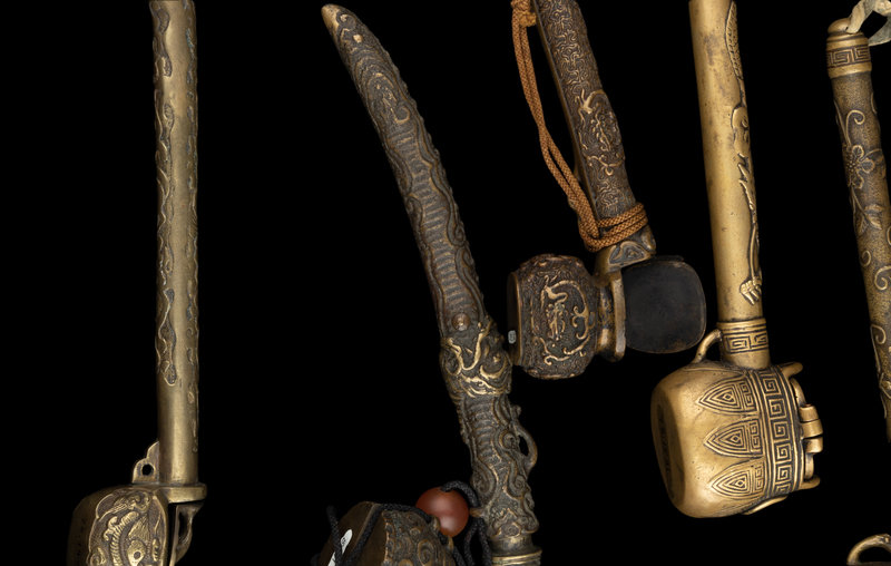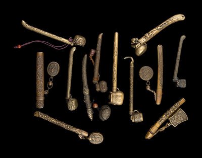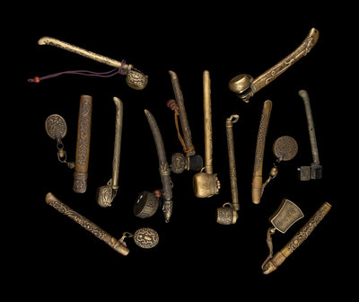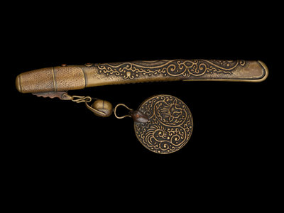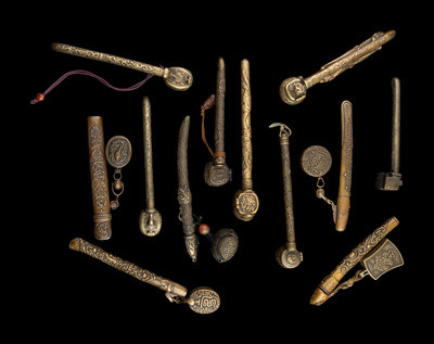 12 Japanese Brass Portable Writing Sets, Yatate