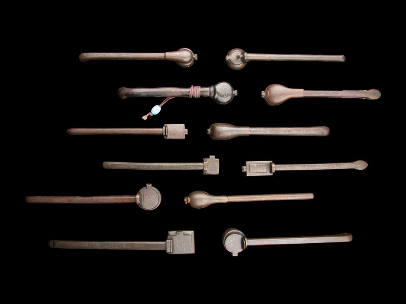 12 Japanese Silver Inlaid Bronze Portable Writing Sets, Yatate