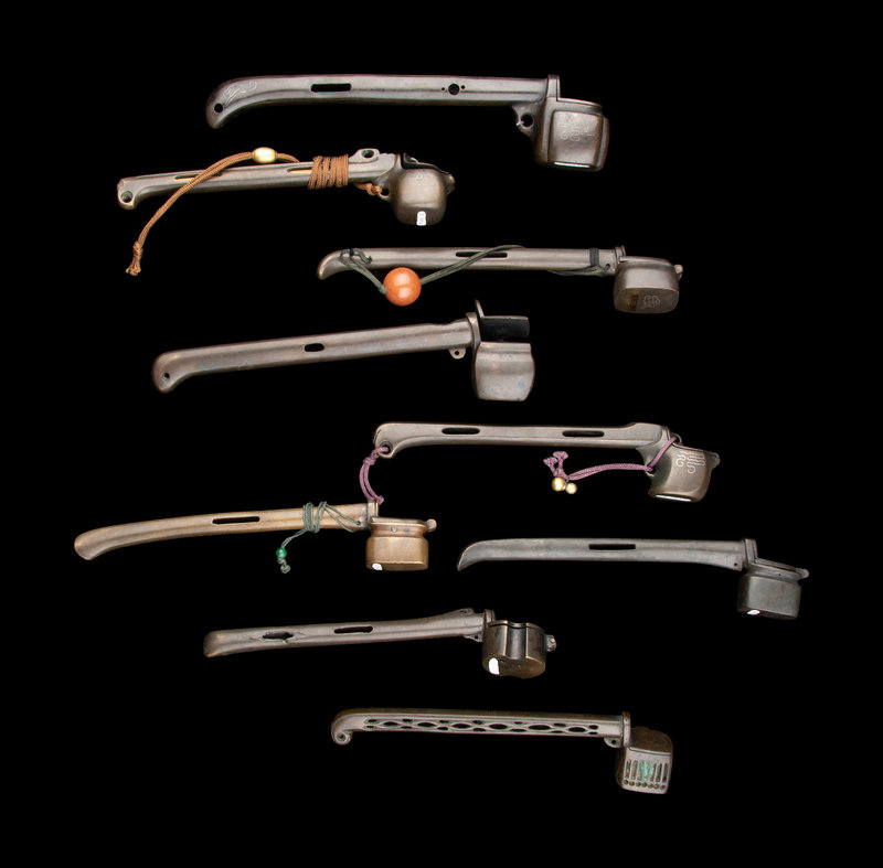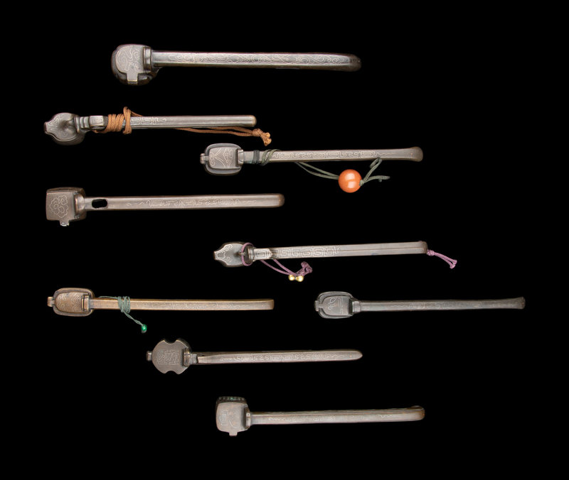 Nine Japanese Reticulated Bronze Portable Writing Sets, Yatate