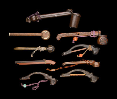 Nine Japanese Portable Bronze Writing Sets, Yatate