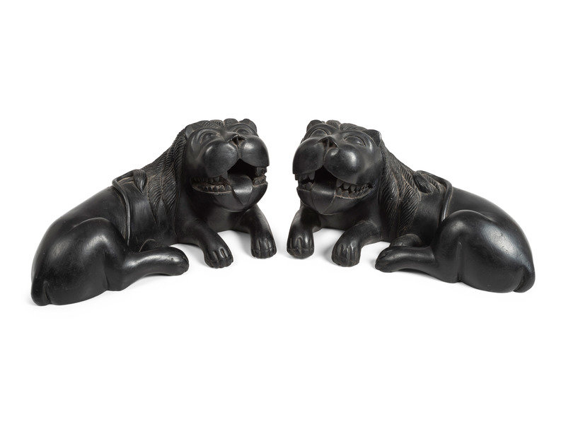 pair of molded lions done in a Haida style