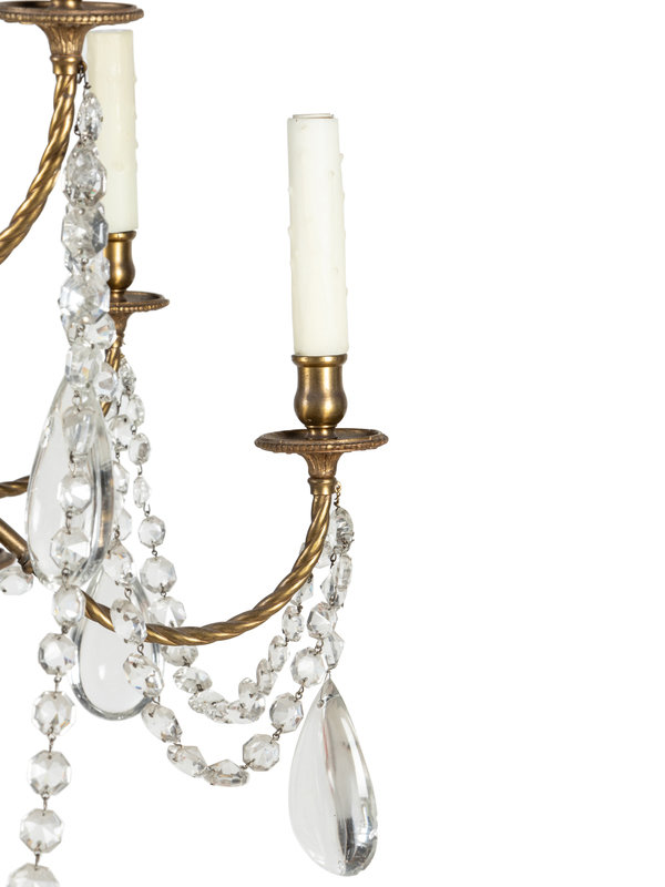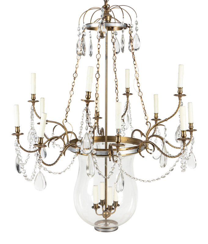 A French Brass and Glass Twelve-Light Chandelier with a Bell-Form Lantern