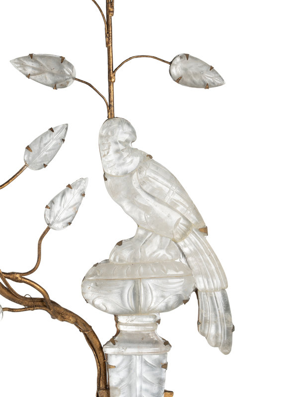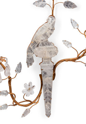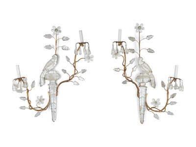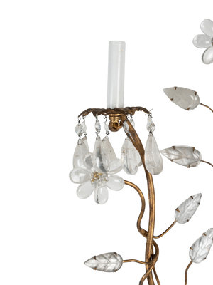 A Pair of Giltwood and Rock Crystal Two-Light Sconces in the Style of Maison Baguès