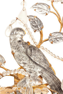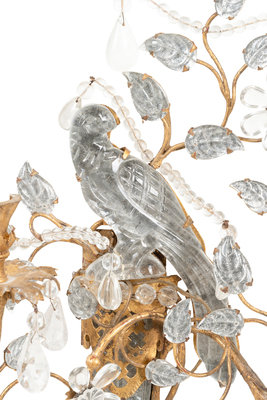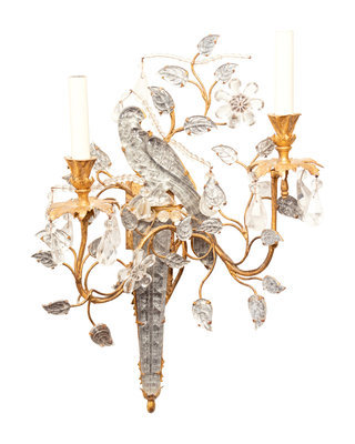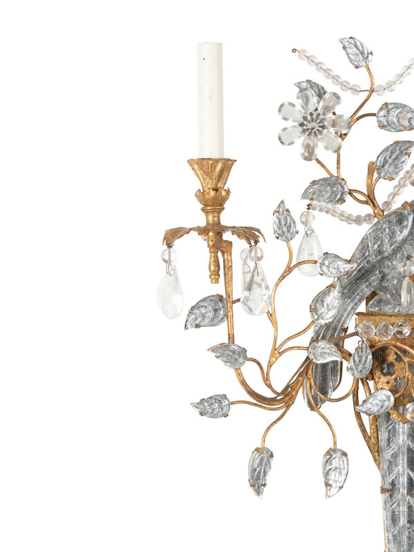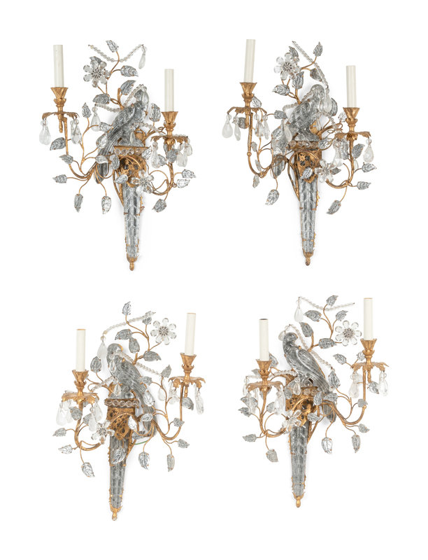 A Set of Four Gilt Metal and Glass Two-Light Sconces in the Style of Maison Baguès