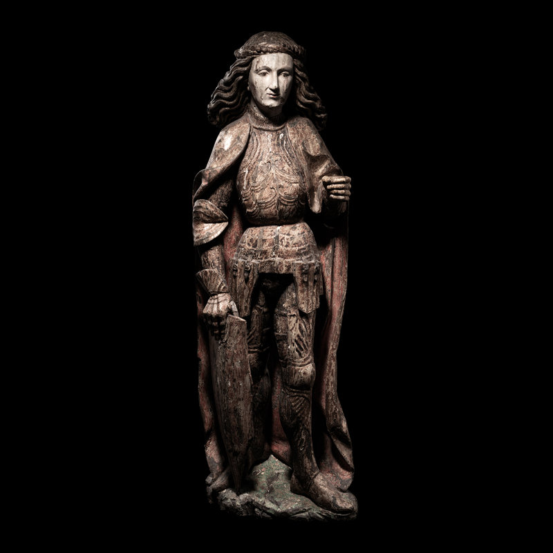 A Carved, Painted and Parcel Gilt Lindenwood Figure of a Tyrolean Knight