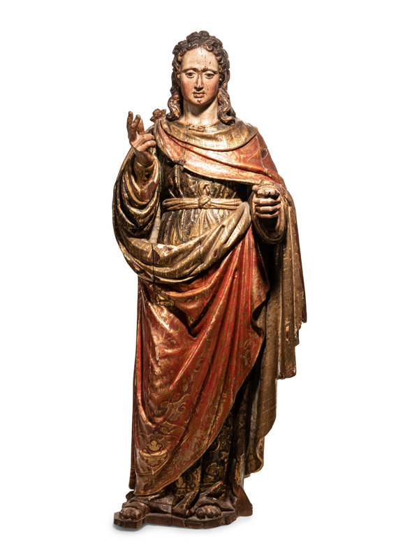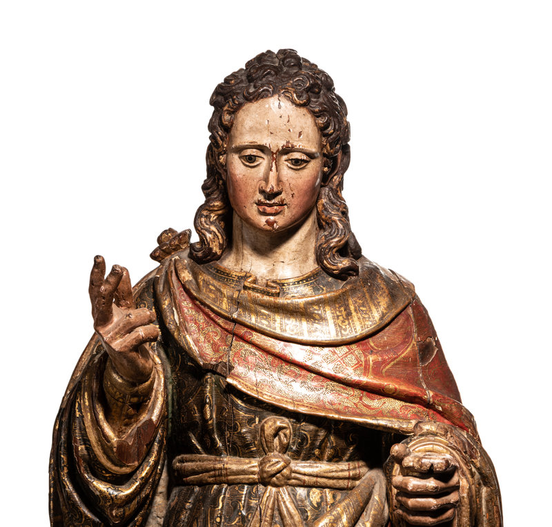 A Carved Parcel Gilt and Polychrome Decorated Figure of Santa Luzia
