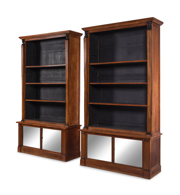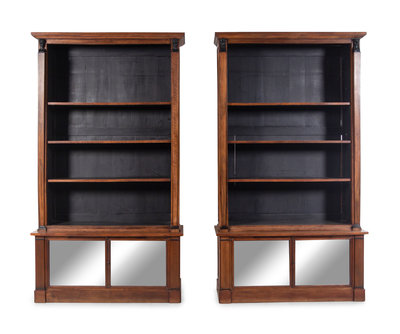 A Pair of Italian Parcel Ebonized Walnut Bookcases