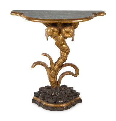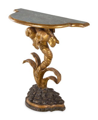 An Italian Painted and Giltwood Faux Marble-Top Console Table