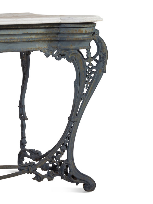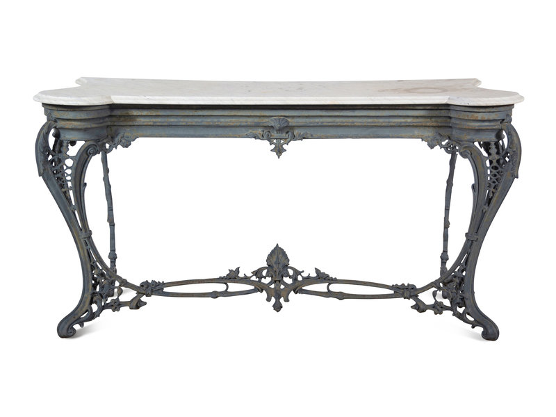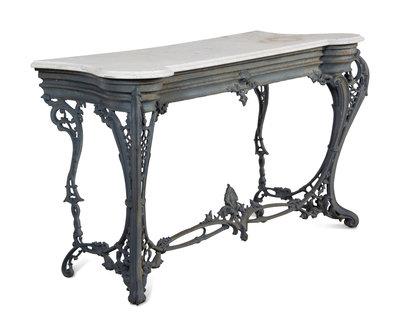 A Continental Patinated Cast Iron Marble-Top Console Table