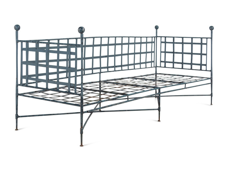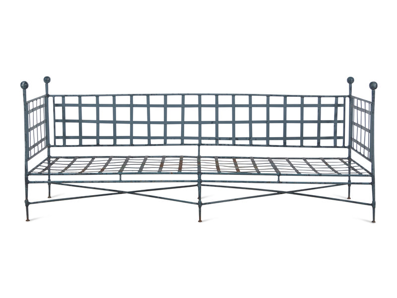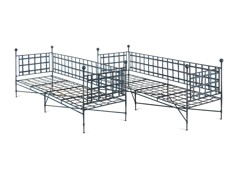 with fitted cushions (not pictured) and spherical finials.