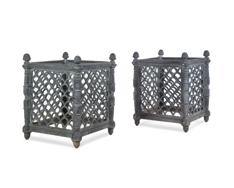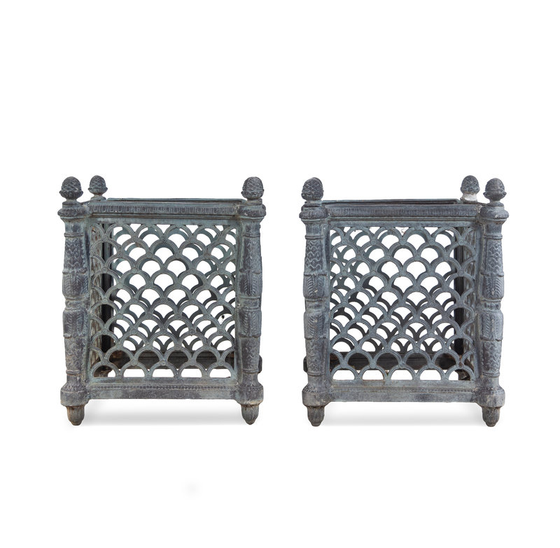 A Pair of French Style Patinated Cast Metal Rectangular Jardinières