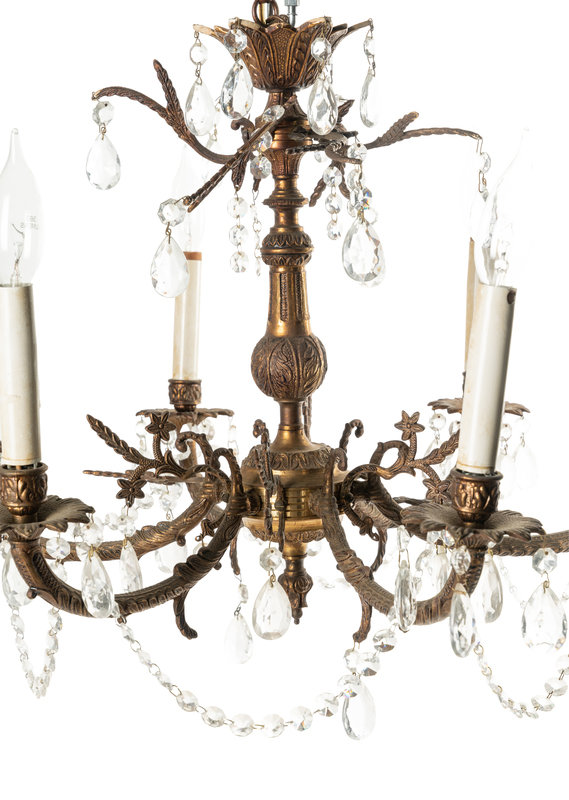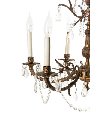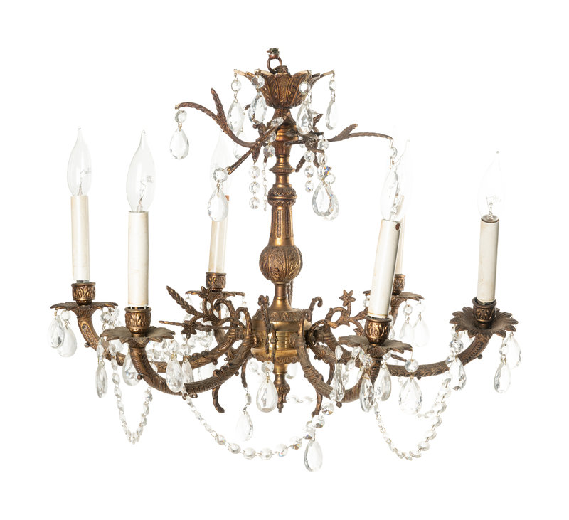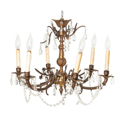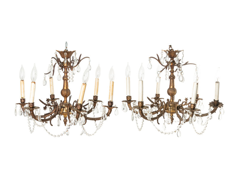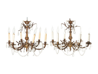 A Pair of French Gilt Metal Six-Light Chandeliers
