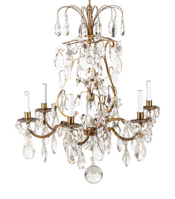 A French Gilt Bronze and Rock Crystal Six-Light Chandelier