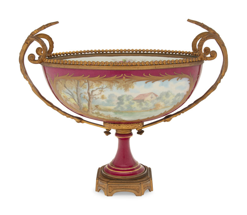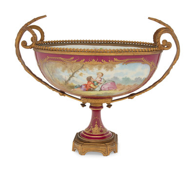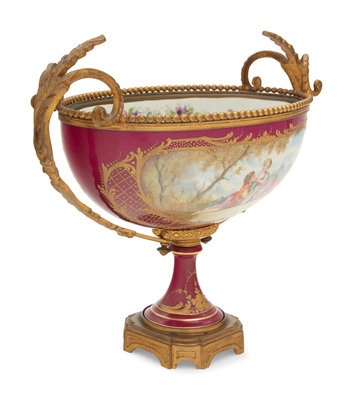 A Sèvres Style Gilt Bronze Mounted Porcelain Centerpiece Bowl