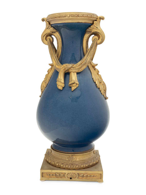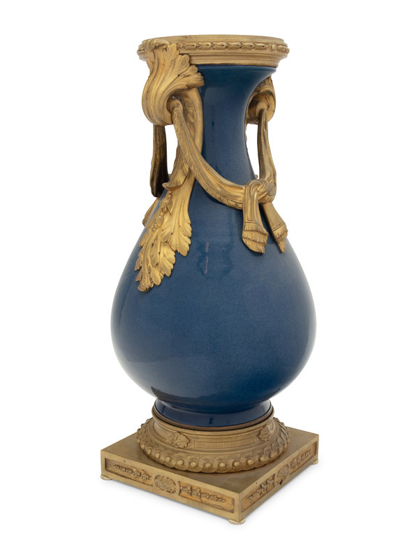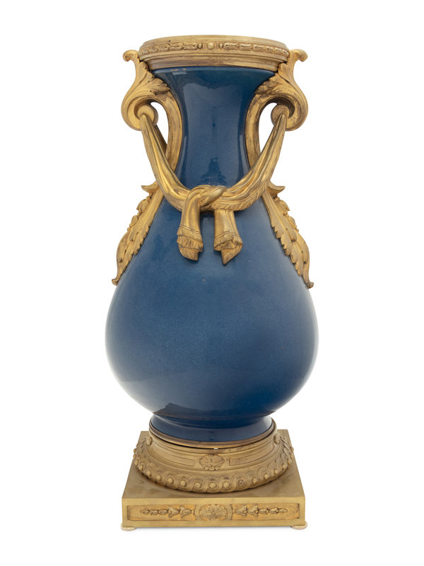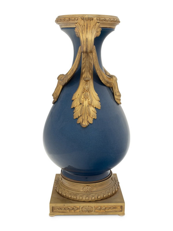 A French Gilt Bronze Mounted Cobalt Porcelain Baluster Vase