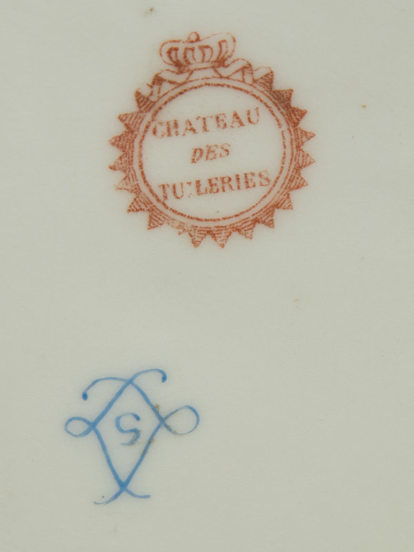 bearing interlaced Ls enclosing an S in underglaze blue and stamped Château des Tuileries to the underside.