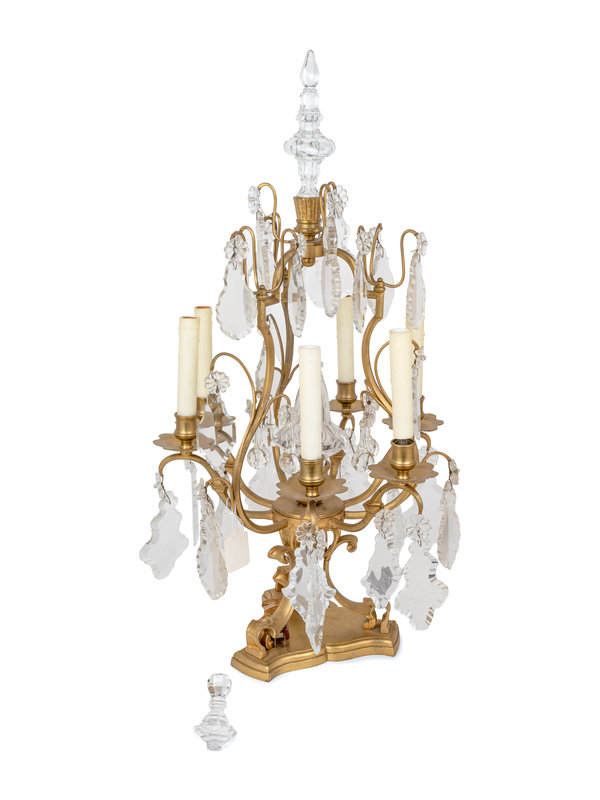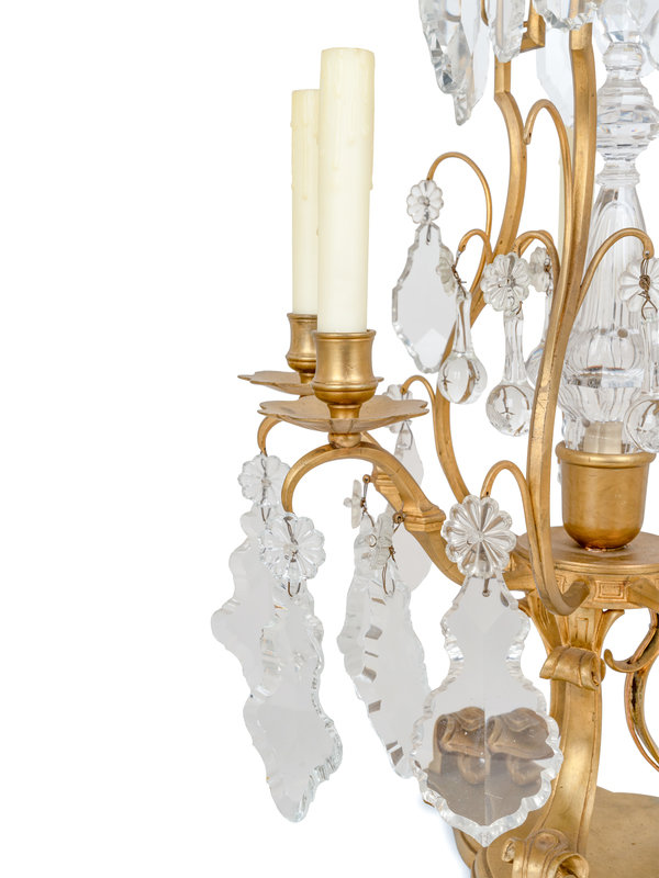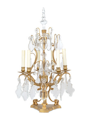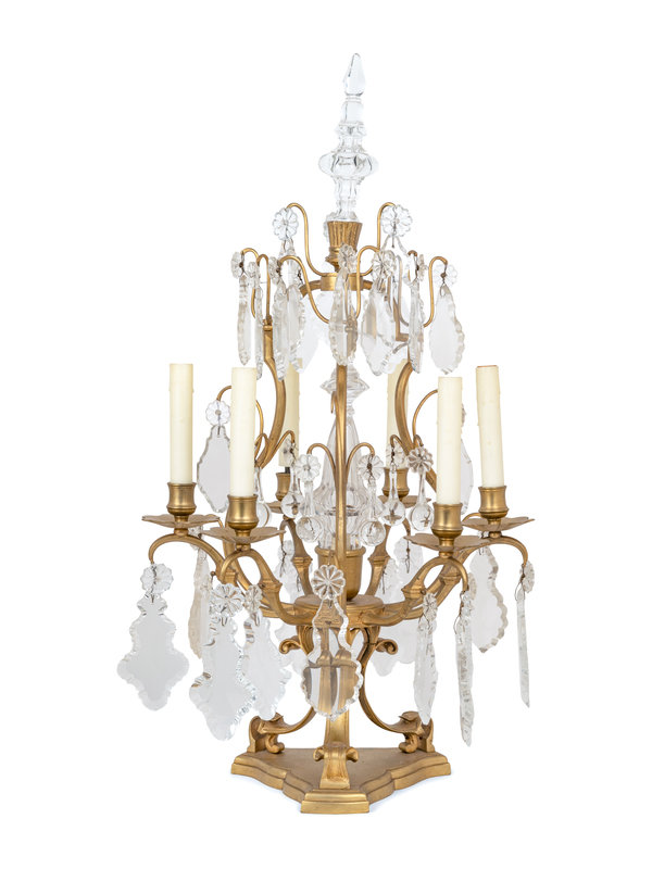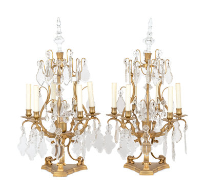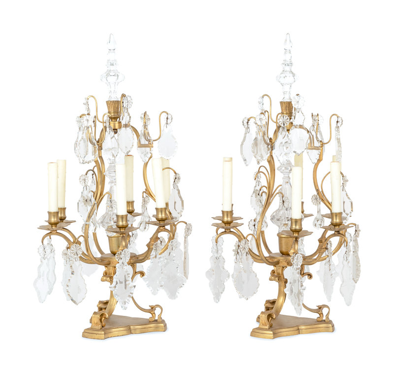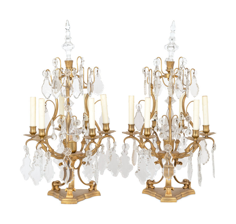 A Pair of French Gilt Metal Six-Light Candelabra Converted to Electricity