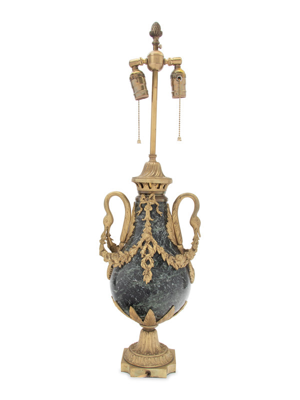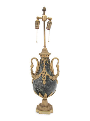 A French Gilt Bronze and Marble Urn Mounted as a Lamp